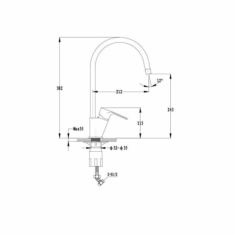 Смеситель EWIGSTEIN для кухни боковой U-образ. D-35mm (топаз)