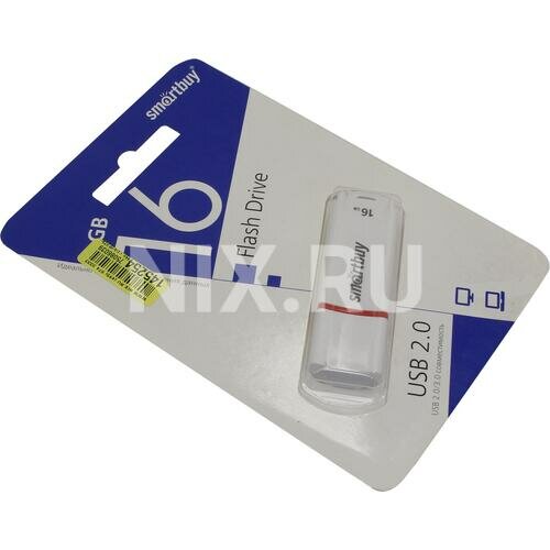 Купить USB Флеш-накопитель Флеш-диск 16 GB, SMARTBUY Crown, USB 2.0, белый, SB16GBCRW-W