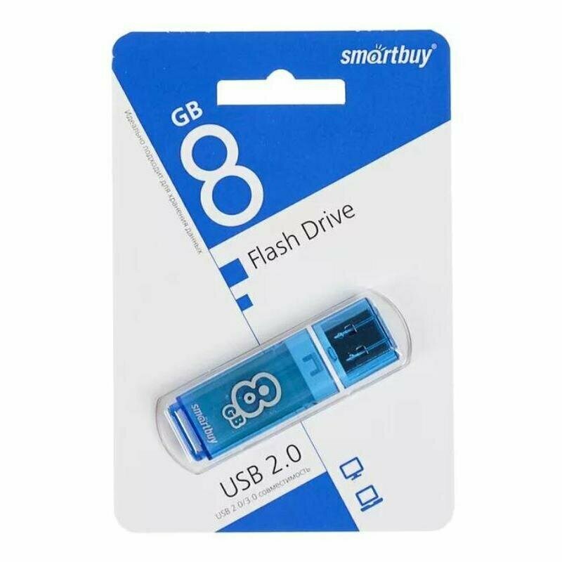 Флеш-диск 8 GB, SMARTBUY Glossy, USB 2.0, синий, SB8GBGS-B В комплекте: 1шт.