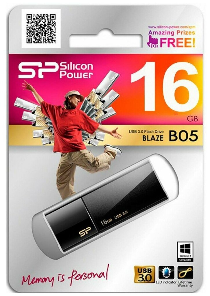 Флеш-карта Silicon Power Blaze B05, 16 гб, USB 3,2 G1, черная (SP016GBUF3B05V1K)