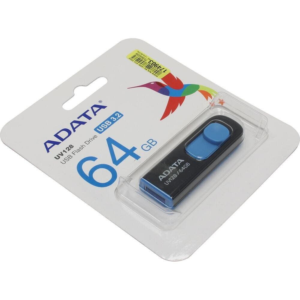 Внешний накопитель 64GB USB Drive ADATA USB 3.1 UV128 черно-синяя выдвижная AUV128-64G-RBE