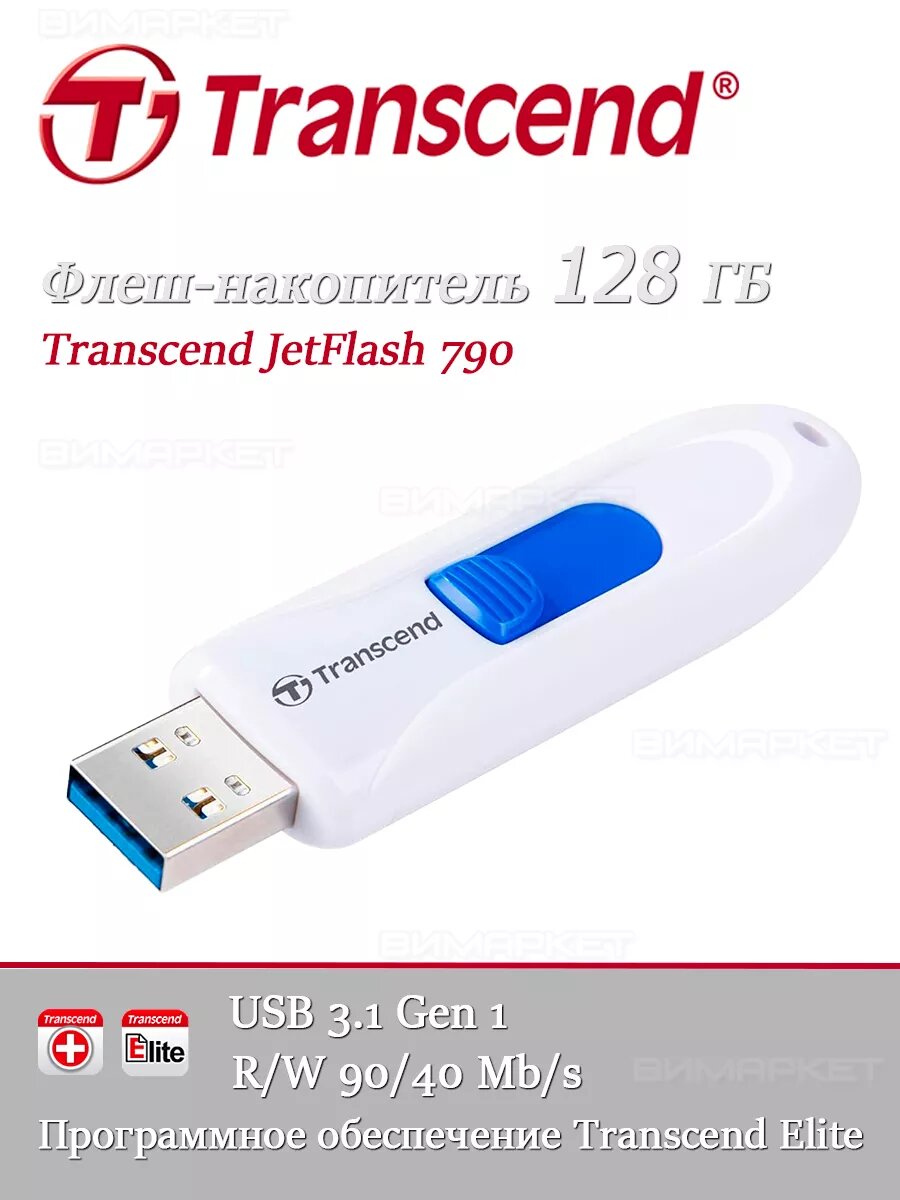 Флеш-память Transcend JetFlash 790, 128Gb, USB 3.1 G1, б/син, TS128GJF790W