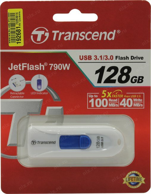 Флешка Transcend JetFlash 790 128Gb (RTL), White