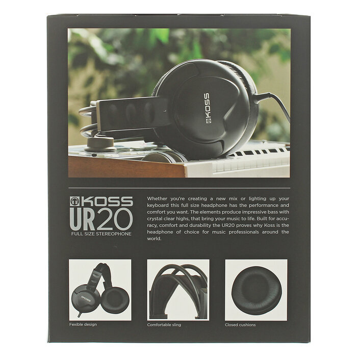 Наушники Koss UR-20 полноразмерные, кабель 2.4 метра, чёрные