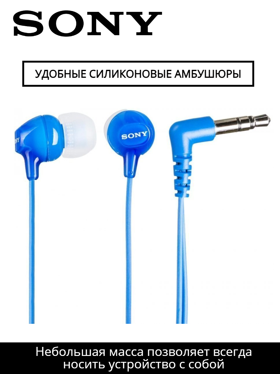Наушники SONY MDR-EX15AP/LI проводные, вакуумные, 1,2м, синий