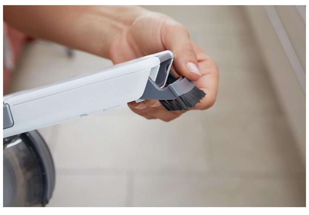 У пылесоса две несъёмные насадки - щётка и выдвижной "носик». Основная проблема в том, что "носик" пылесоса достаточно узкий и легко забивается мусором. Проблема решается прочисткой. Вторая проблема заключается в том, что даже с выдвинутым «носиком» доступ в разные щели не очень удобен. Для этого лучше использовать модель с гибким шлангом. Рекомендую для регулярной мелкой уборки пыли и мелкого мусора на открытых поверхностях. Не рекомендую для уборки в труднодоступных местах. |