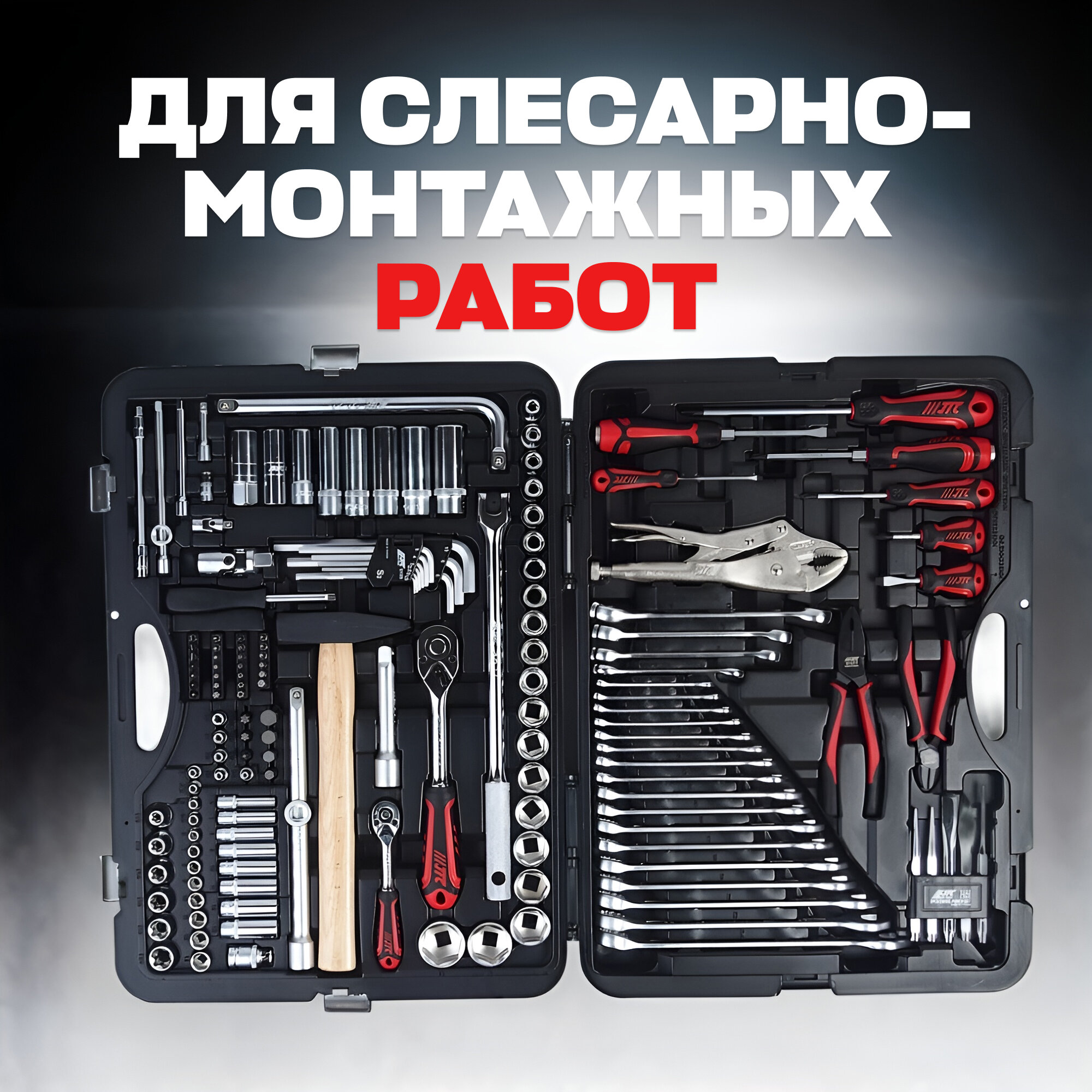 Набор инструментов 156 предметов слесарно-монтажный 1/4",1/2" 6-ти гран. (кейс) JTC JTC-H156C-B72