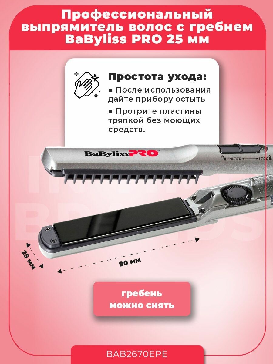 Щипцы-выпрямители BaByliss PRO BAB2670EPE Sleek+, EP Technology, 25х90 мм