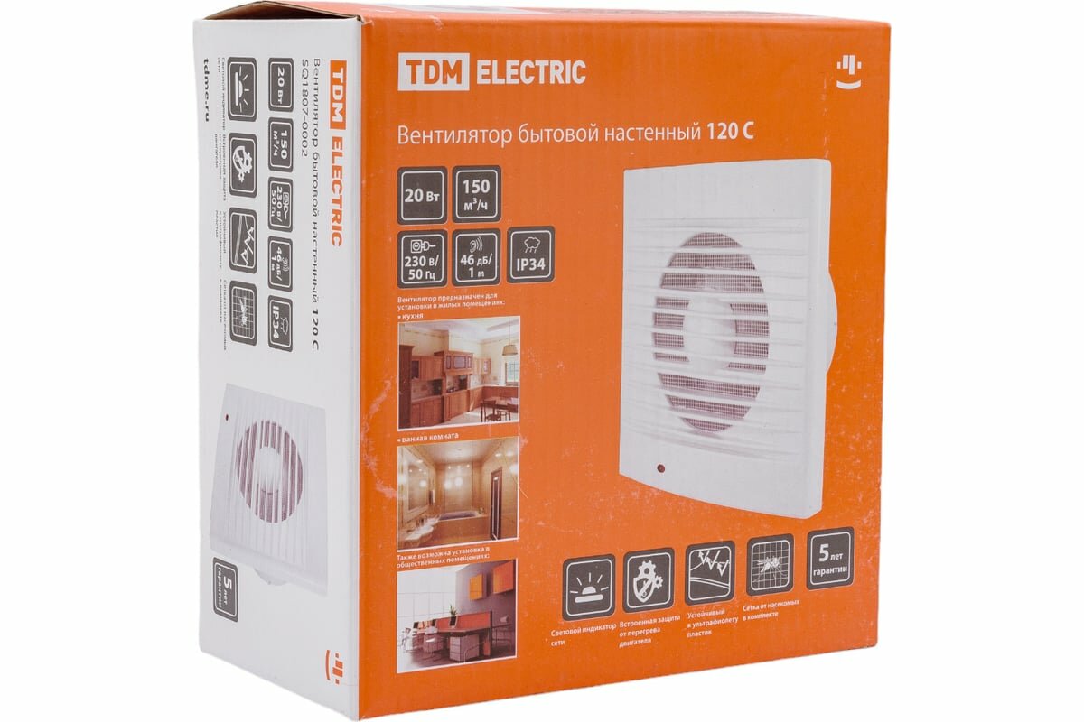 Вентилятор вытяжной настенный, TDM Electric, установочный диаметр 120 мм, 20 Вт, 150 м3/час, SQ1807-0002