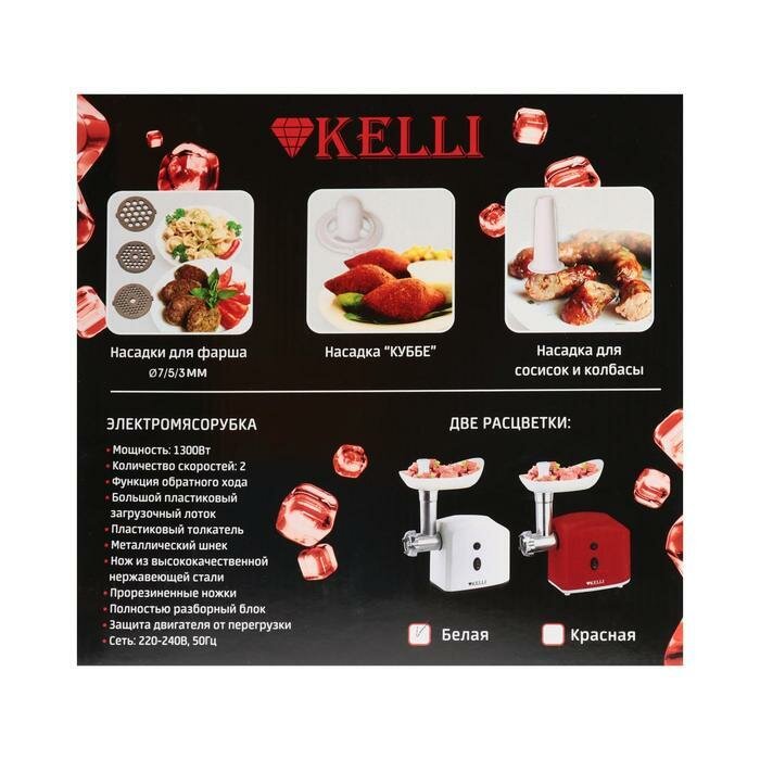 Мясорубка электрическая KELLI KL-5003, 1300 Вт, 2 скорости, 2 насадки, белая Kelli 6709304 .