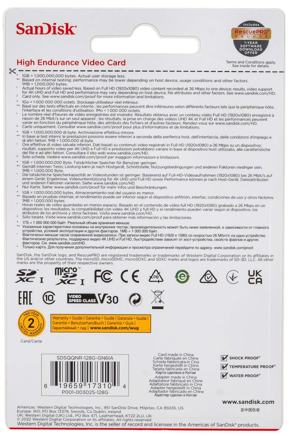 Карта памяти SanDisk High Endurance microSDXC 128Gb V30, UHS-I Class 3 (U3), Class 10