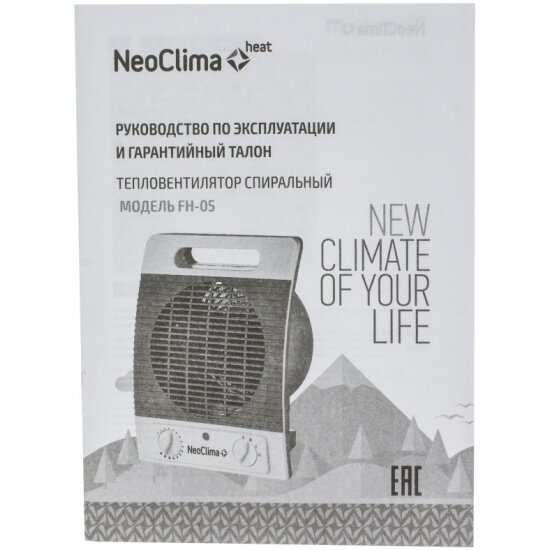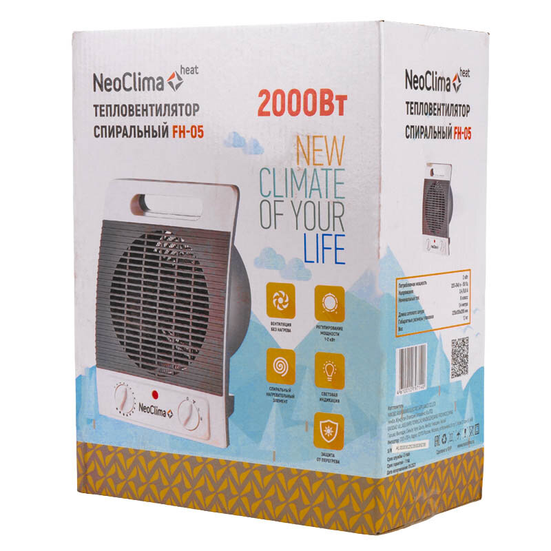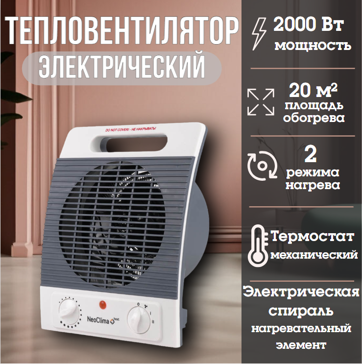 Напольный воздухообогреватель для дома NeoClima FH-05 (мощность 2000 вт, вес 0.9 кг, встроенный термостат)