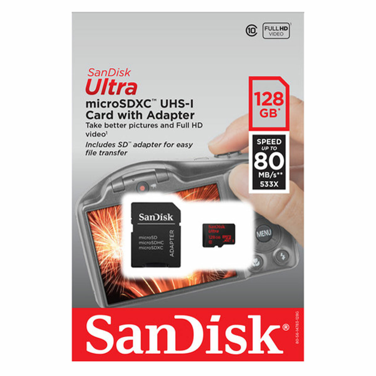 Купить Карта памяти SanDisk microSDXC Class 10 UHS-I U1 SDSQUNS-128G-GN6TA 128GB , адаптер SD, цвет: бело-серый