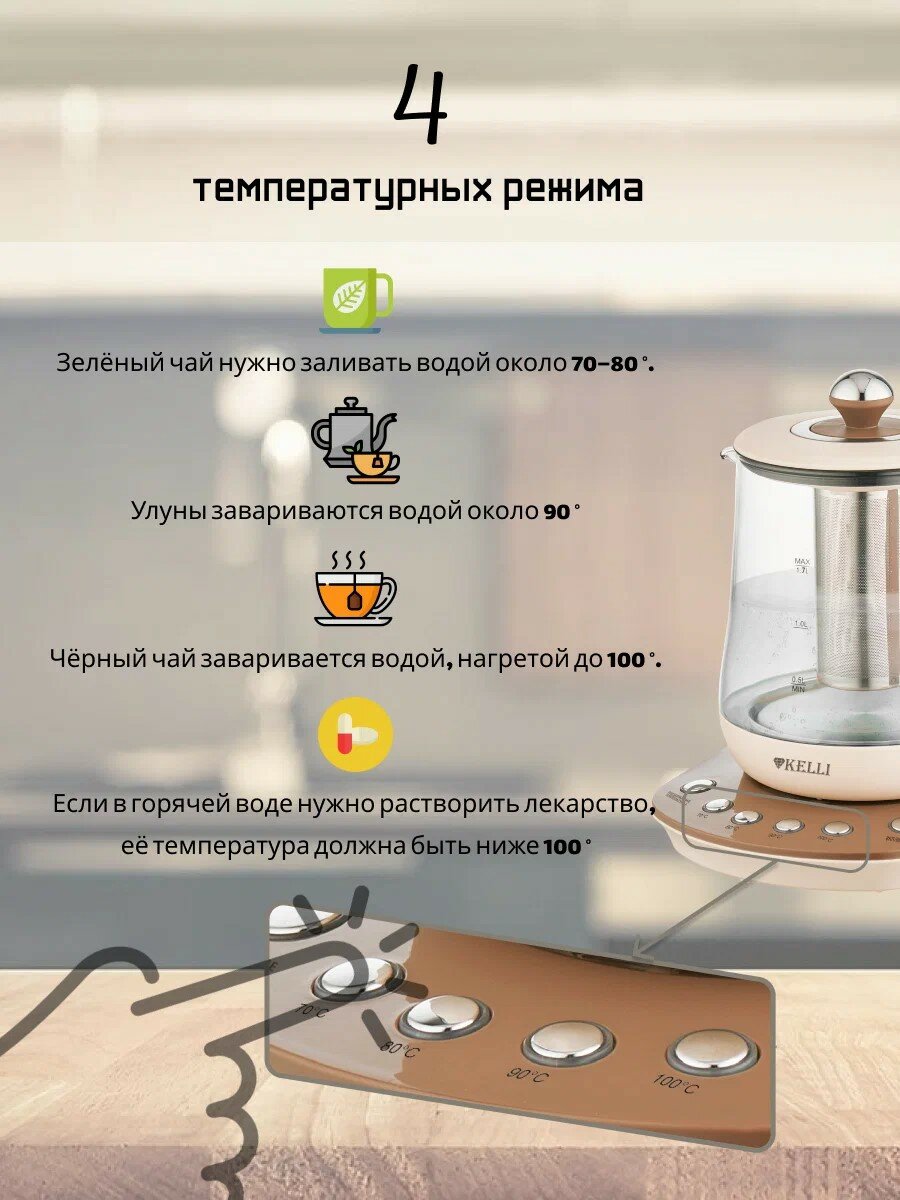 Купить Чайник заварочный электрический 1,7 л 2200 Вт, стеклянный 4 режима температуры