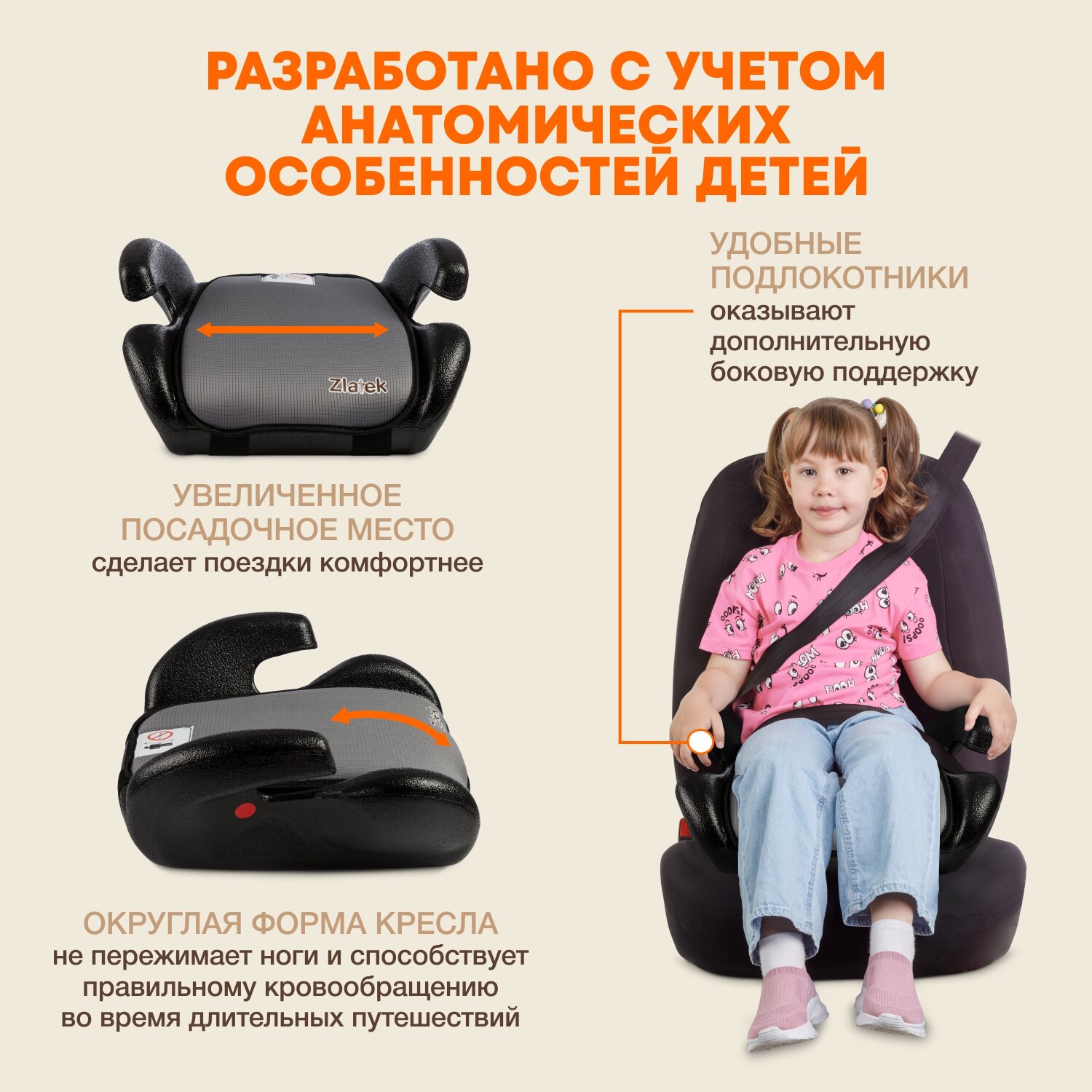 Бустер автомобильный Zlatek Gals от 22 до 36 кг, цвет винтаж