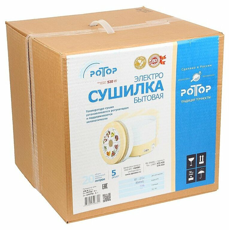 Сушилка для овощей и фруктов Ротор-Дива СШ-007, 5 поддонов, гофротара