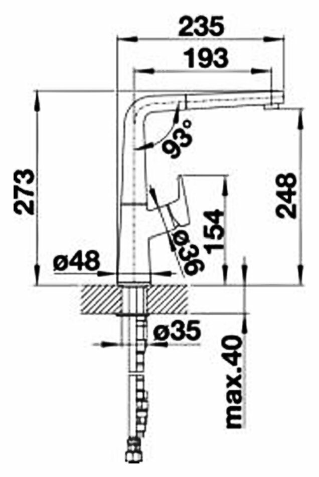 | Высота излива | 248 мм / 273 мм |