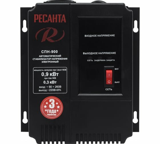Стабилизатор напряжения однофазный РЕСАНТА СПН-900 (0.9 кВт) черный