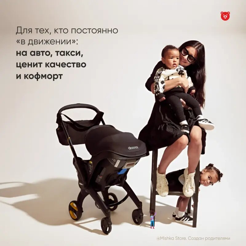 Коляска-автокресло Doona+, Nitro Black, автолюлька для новорожденных, с рождения, группа 0+ (0-13 кг), черный