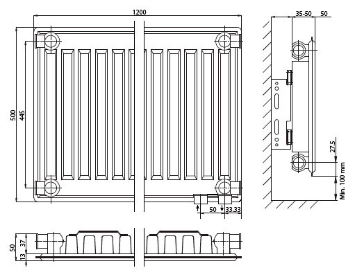 Радиатор Elsen ERV 11 500 1200 подключени нижнее справа, с термостатическим вентилем, панельный