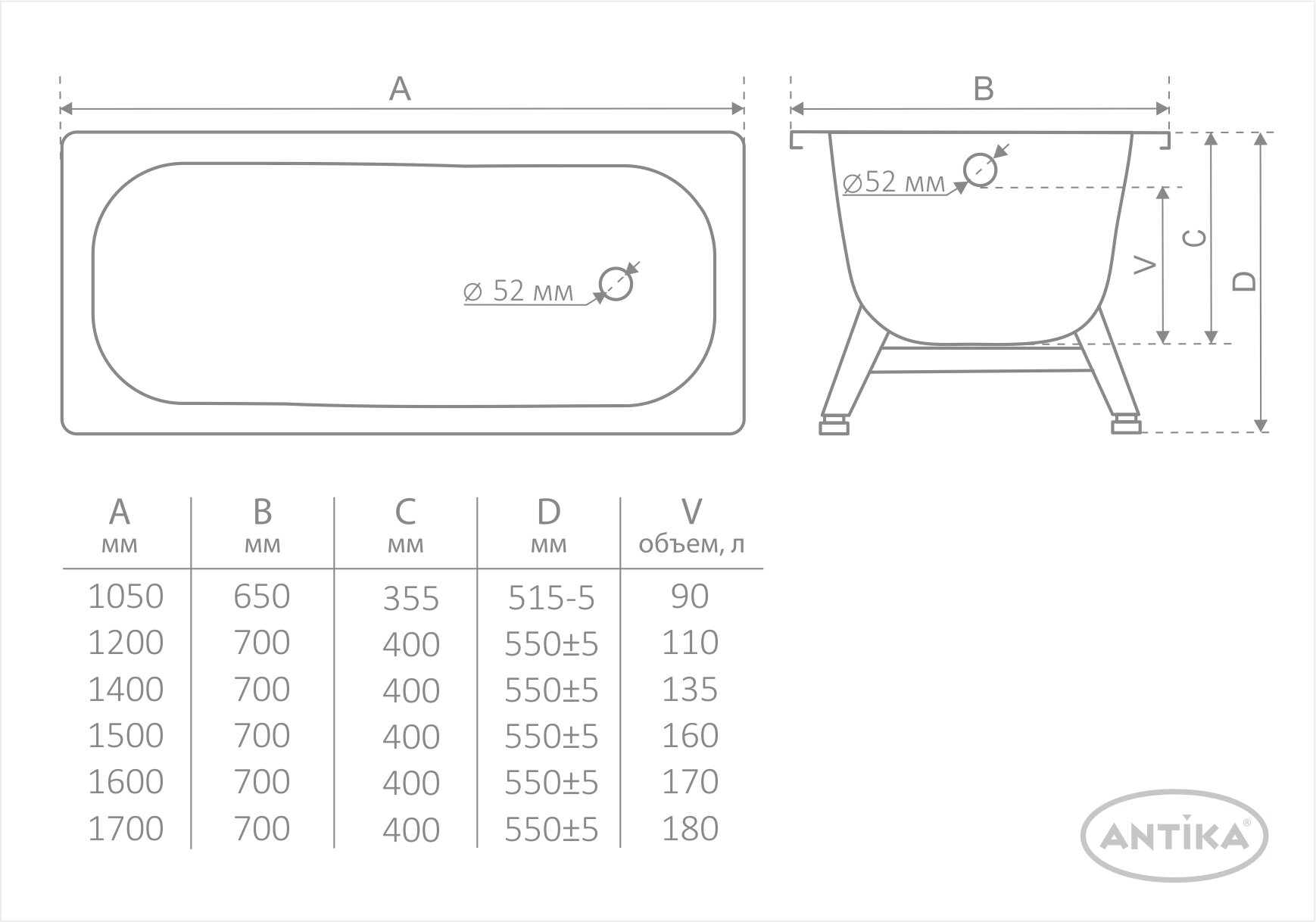 DONNA VANNA Ванна стальная Antika А-40001 140х70 с ножками ВИЗ интересное: