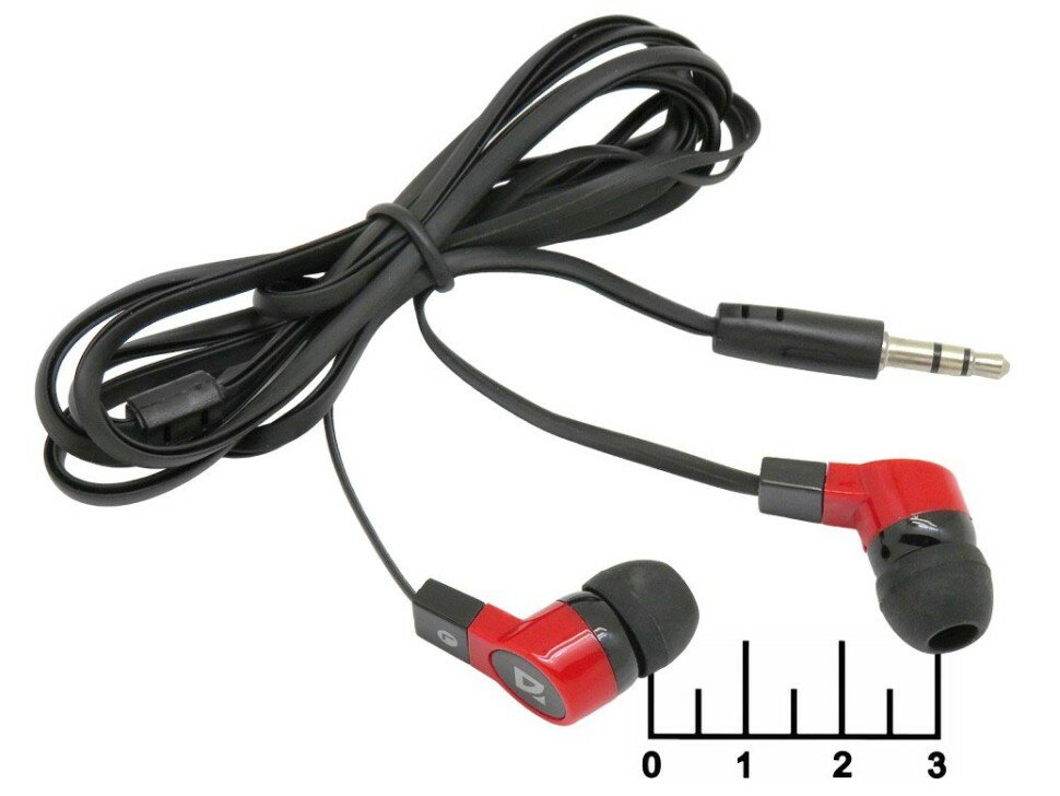 Проводные наушники внутриканальные Defender Basic-619 Jack 3.5 из пластика, цвет черно-красный, 1 шт