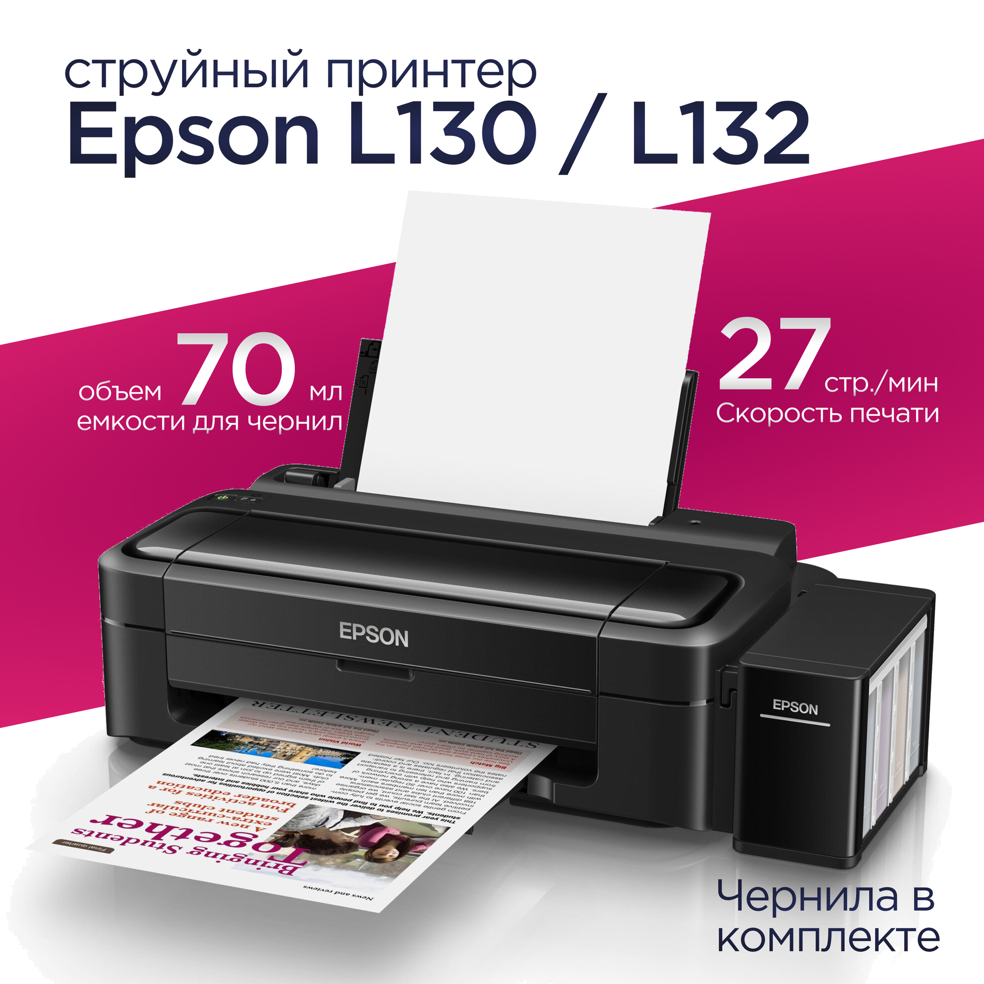 Принтер струйный Epson L130 интересное: