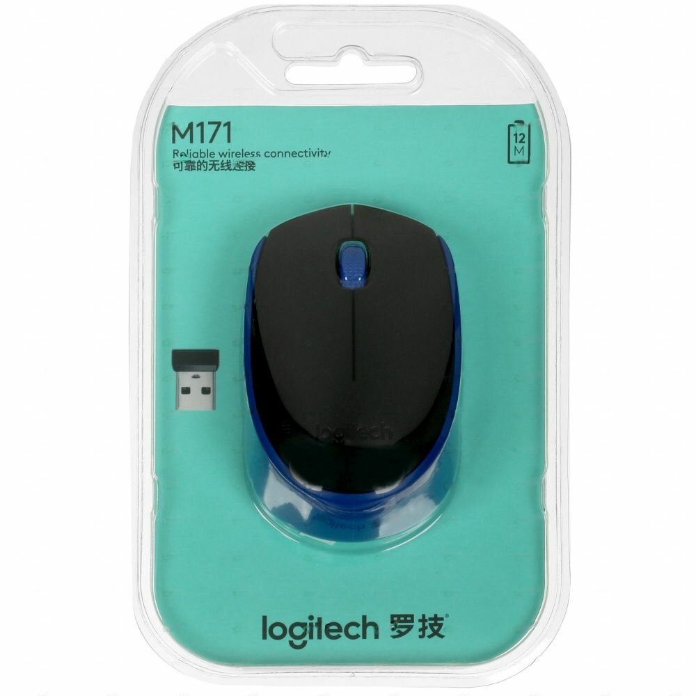 Мышь Logitech M171, оптическая, беспроводная, USB, синий и черный [910-004640]