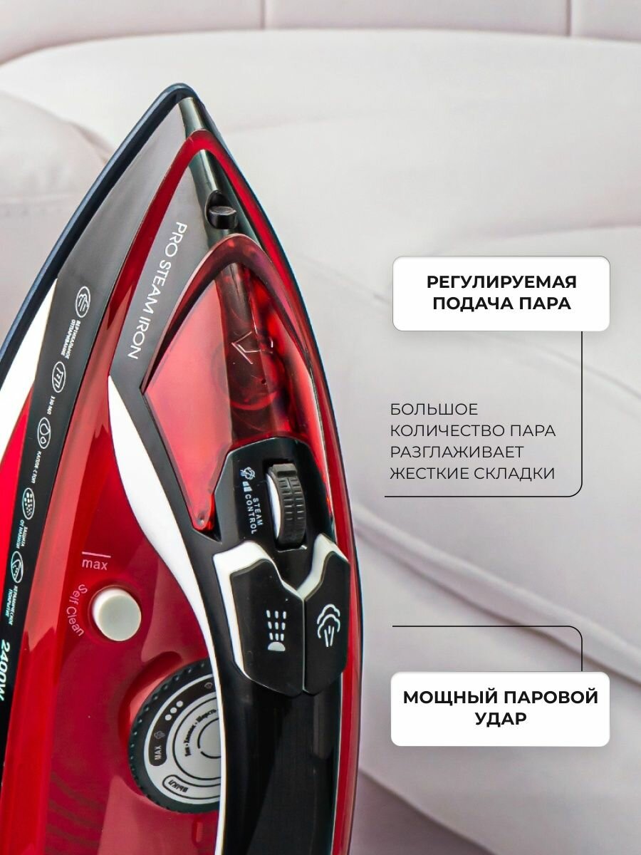 Утюг Centek CT-2344 RED, 2400 Вт, подошва керамическая, красный