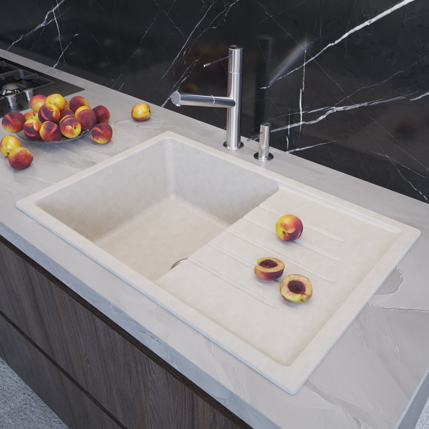 Мойка для кухни из искусственного мрамора 75х50, прямоугольная, с крылом, с сифоном, MIXLINE ML-GM 19, бежевая