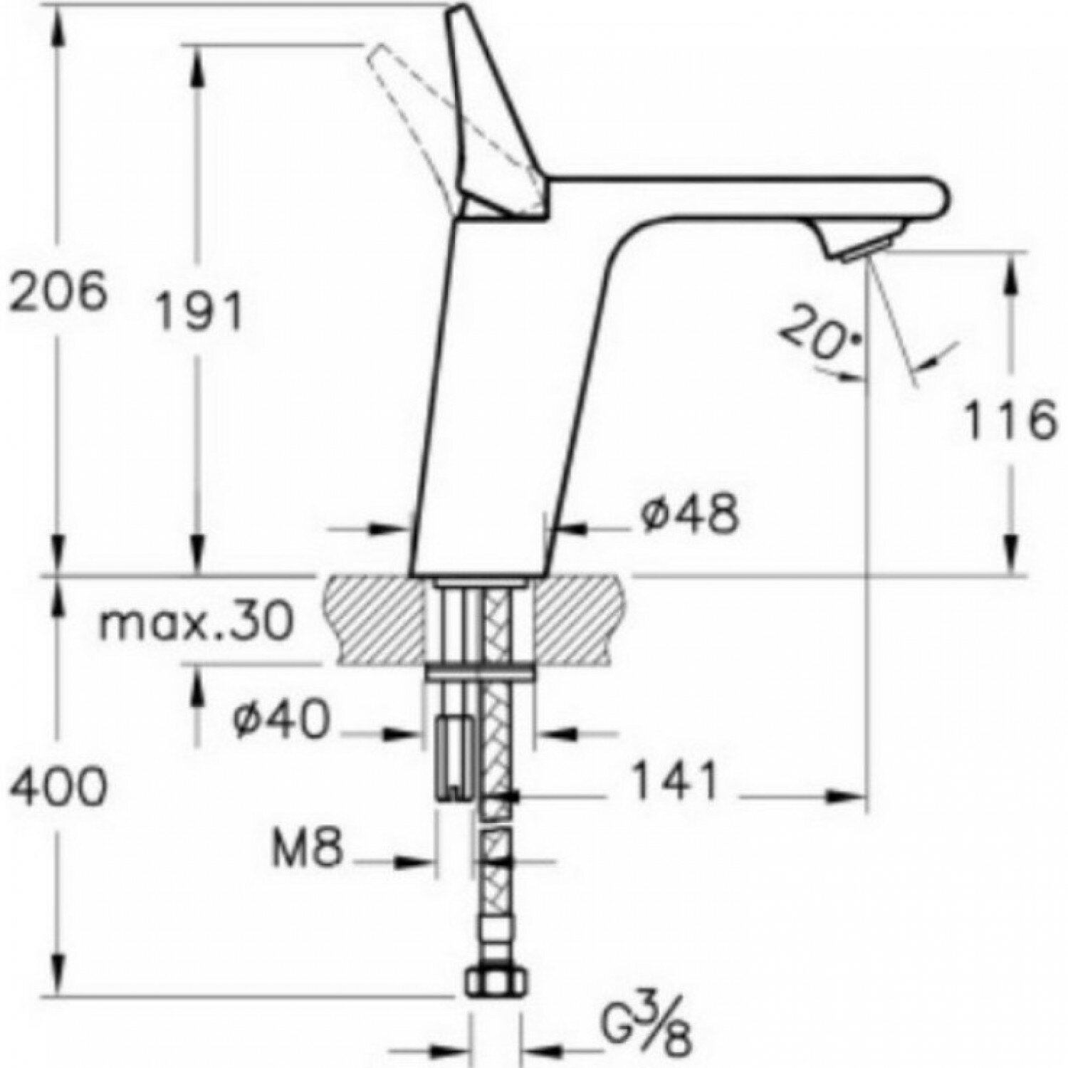 | Высота излива | 116 мм / 206 мм |
