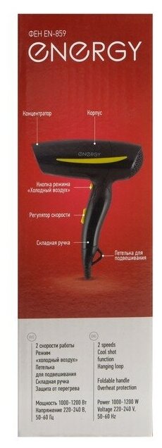 Фен Energy EN-859 Черный, 1,2кВт, 2 режима, склад. ручка 900234