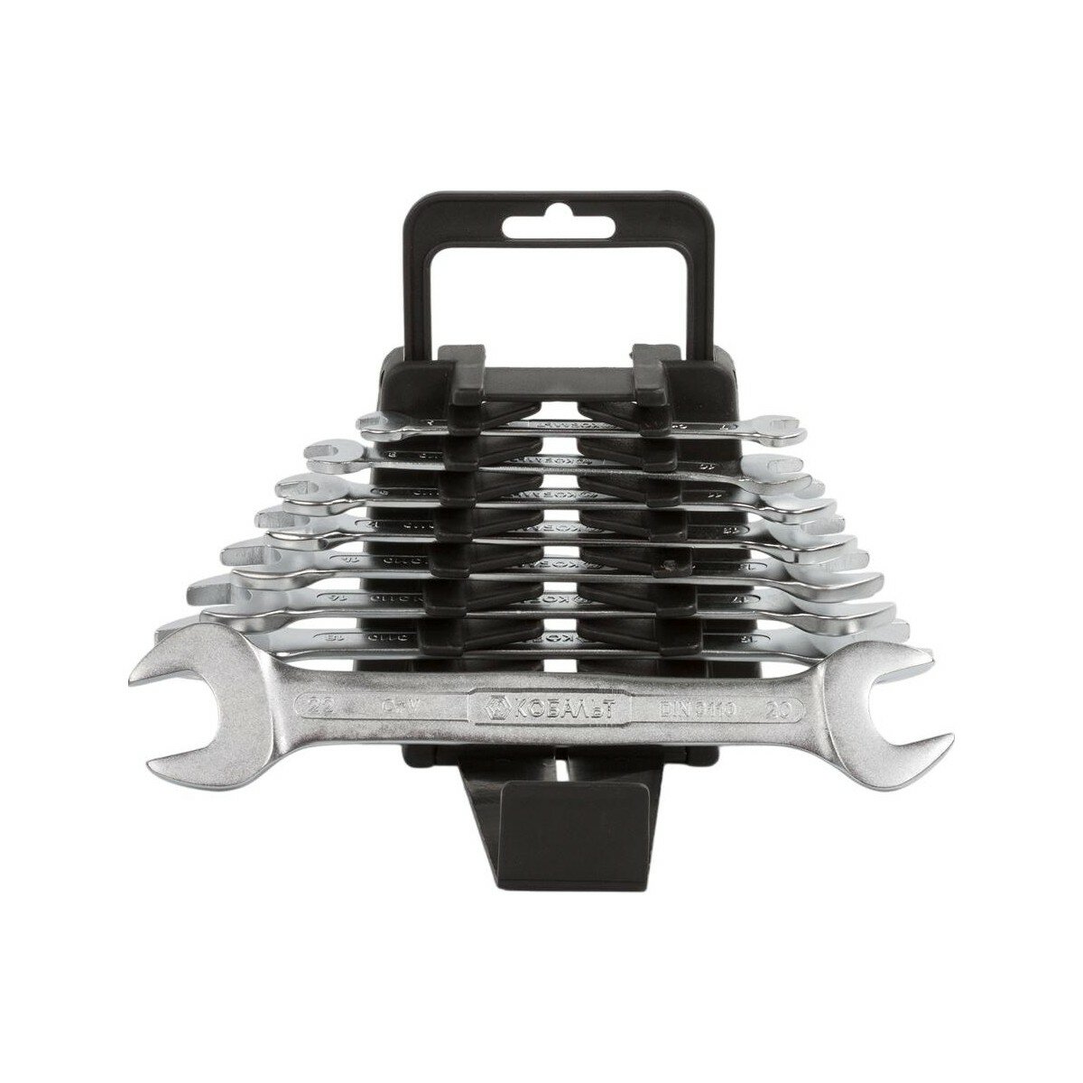 Набор ключей рожковых кобальт 6x7,8x10,9x11,12x13,14x15,16x17,18x19,20x22 мм (8 шт.) держатель 02020