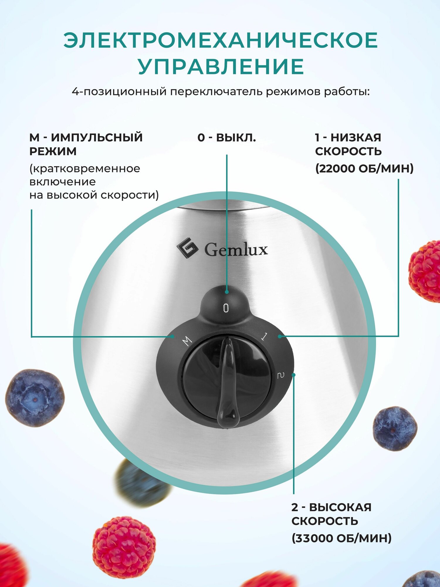 Блендер GEMLUX GL-BL500G для смузи и коктейлей стационарный с чашей 1.5 л интересное: