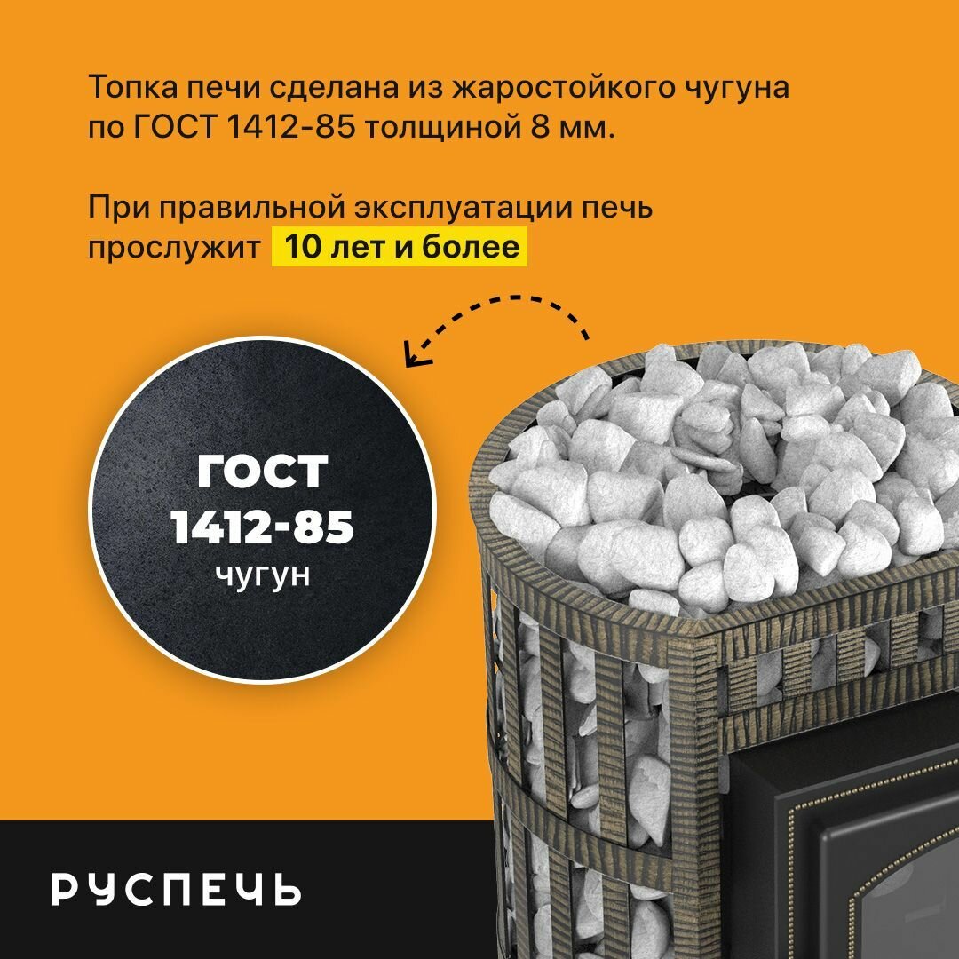 Печь для бани Везувий Легенда Ковка 16 (224) дровяная чугунная со стеклом, сетка каменка
