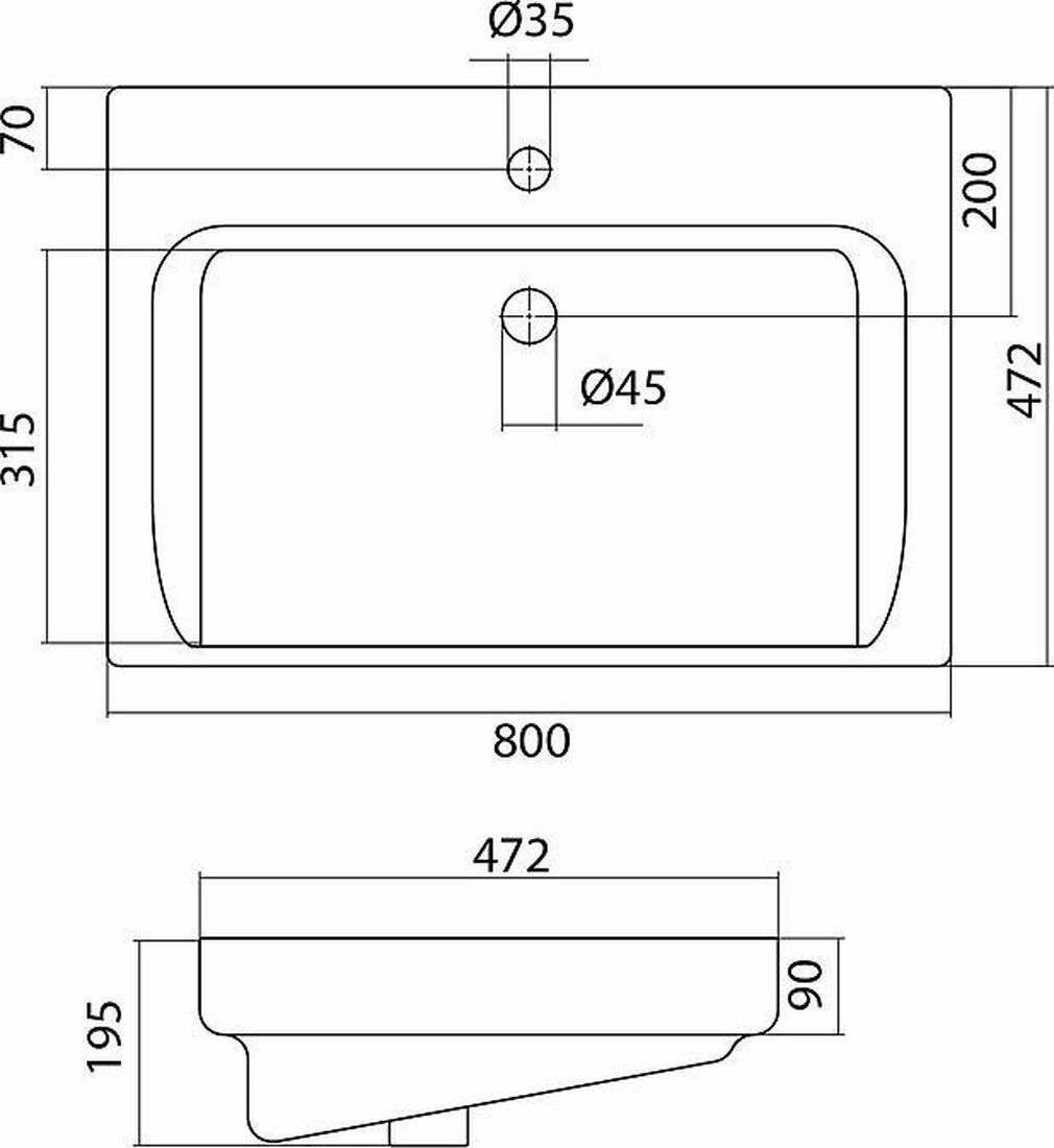 Встраиваемая сверху раковина Santek Тигода 80х47,5см, арт. 1WH302084, санфарфор, с отв. под смеситель