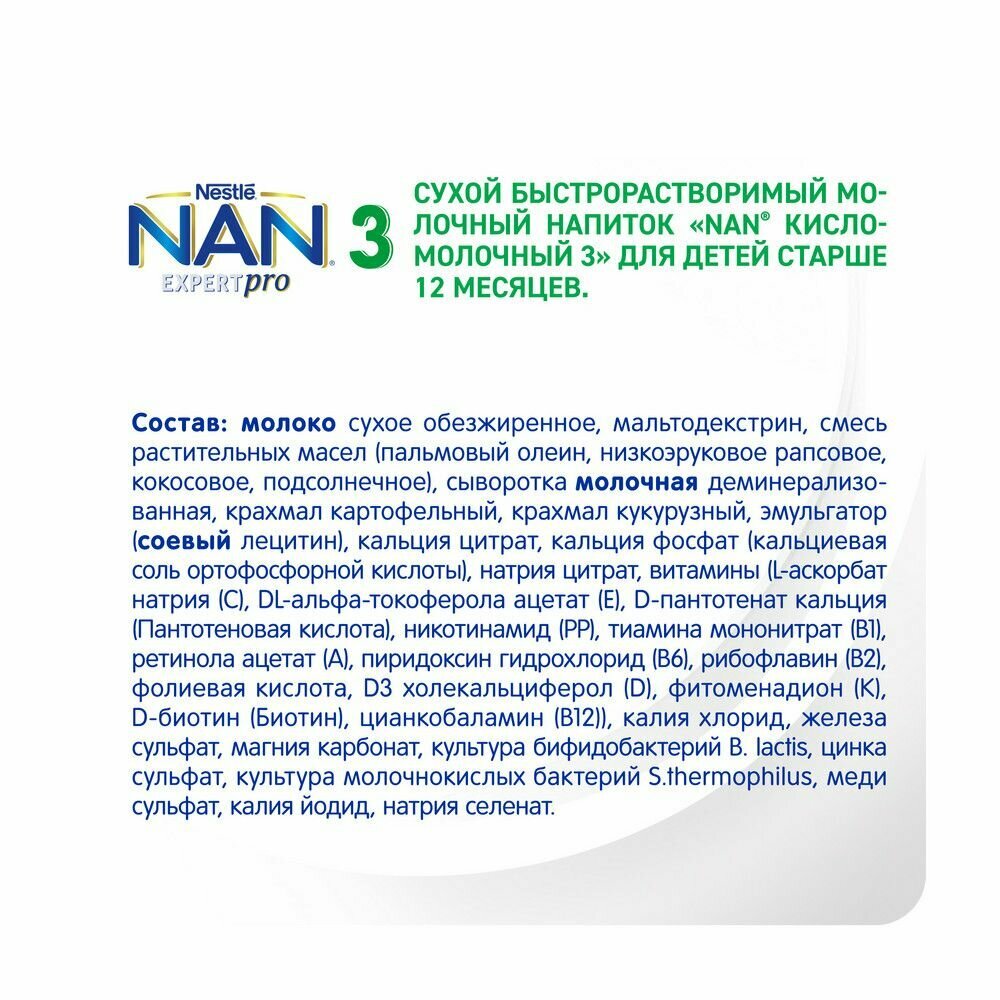 Молочко детское Nestle NAN 3 ExpertPro, кисломолочный, с 12 месяцев, 400 г