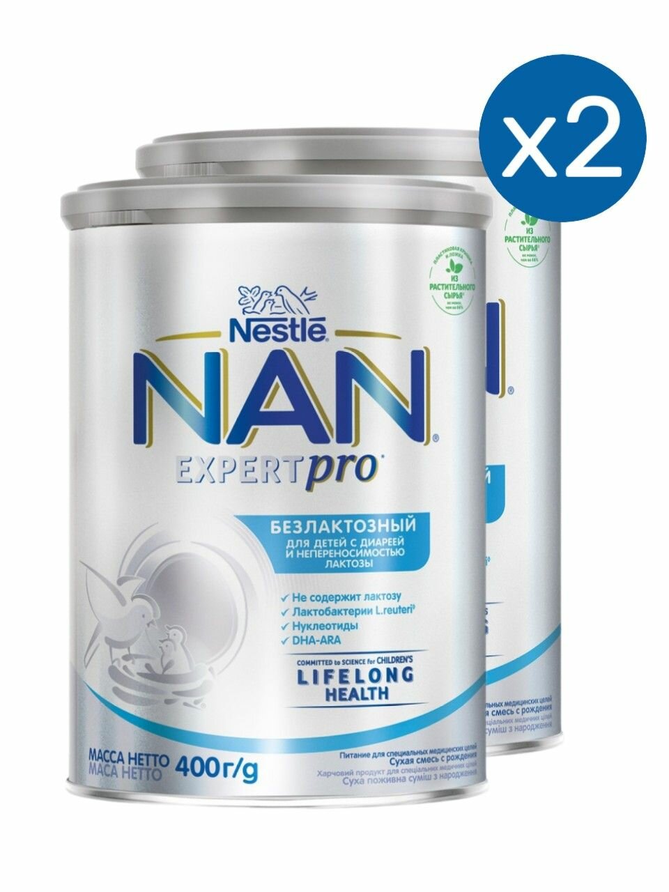 Купить Смесь Nestle NAN ExpertPro безлактозный для детей с диареей и неперосимостью лактозы, с рождения, 400 г 2 шт