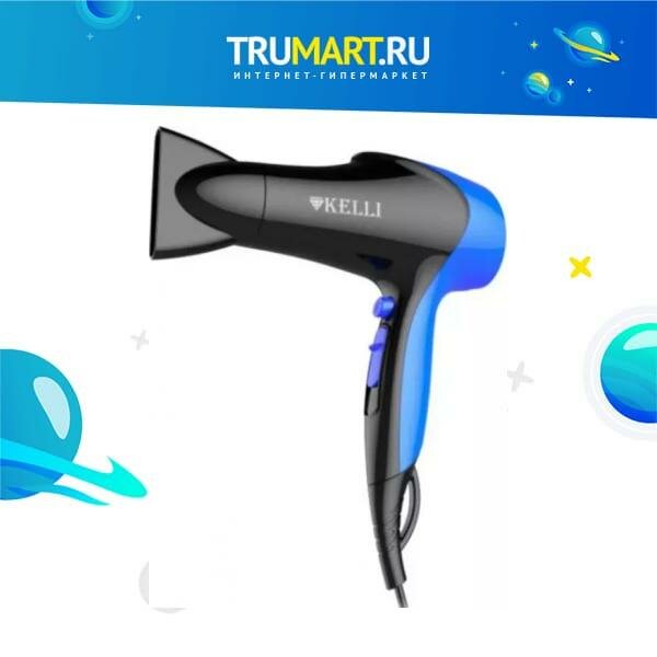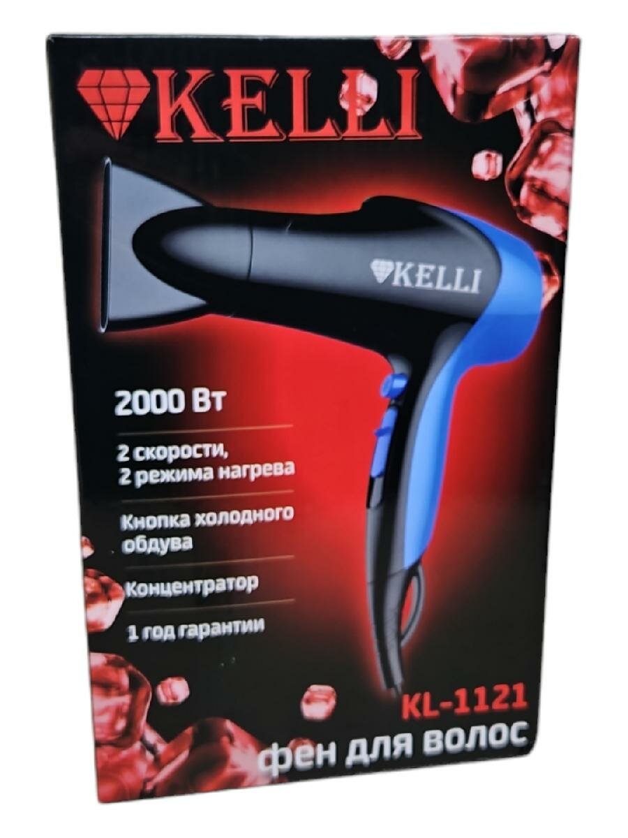 Фен KELLI KL-1121, 1800 Вт, 2 температурных режима, сине-чёрный Kelli 7038939 .