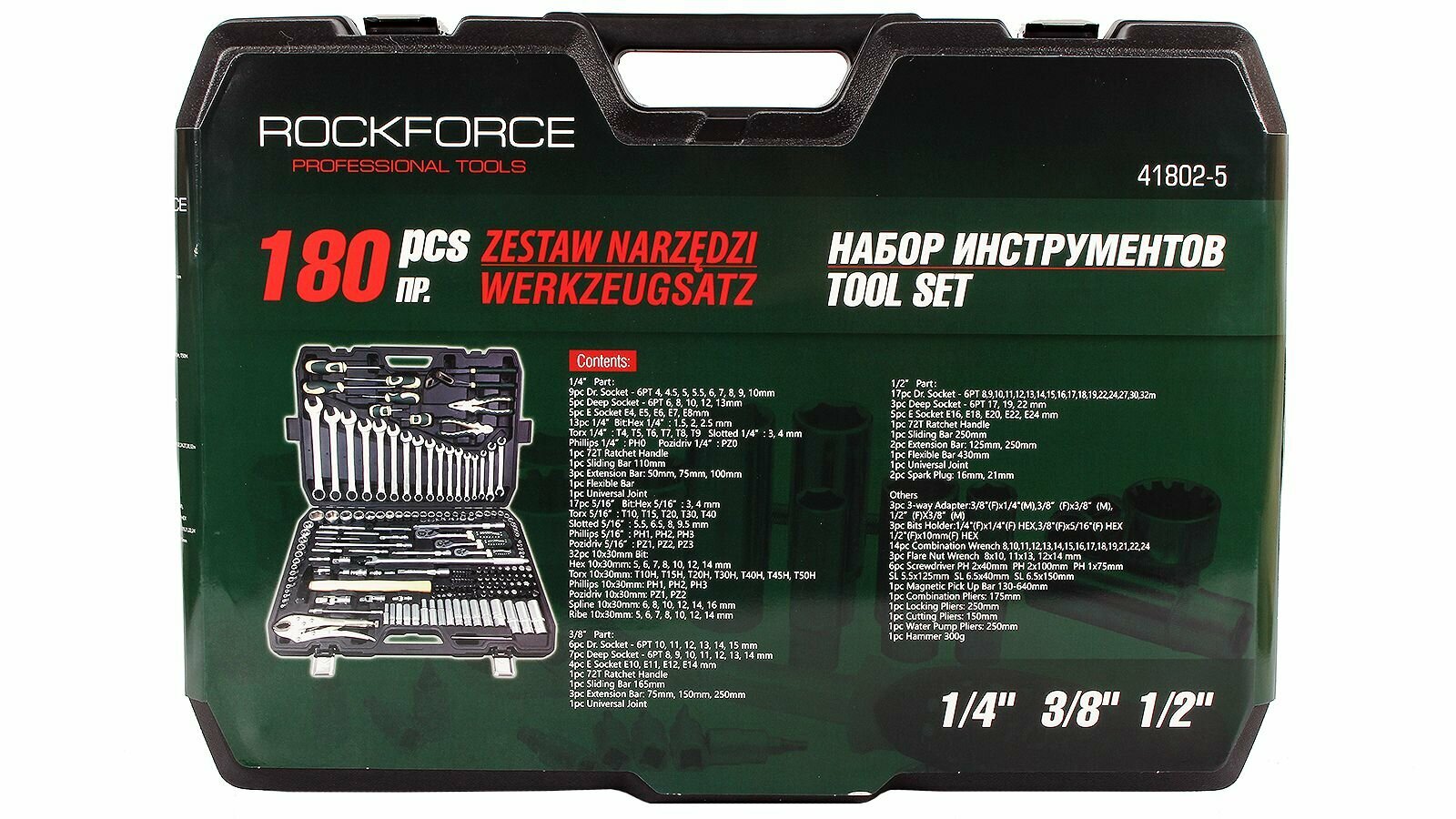 Набор инструмента ROCKFORCE 1/2 1/4 3/8DR 180 предметов RF-41802-5