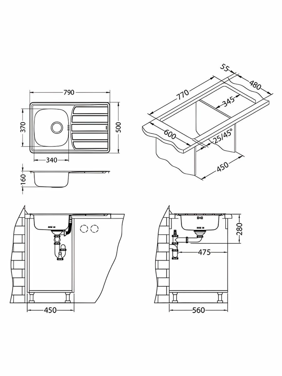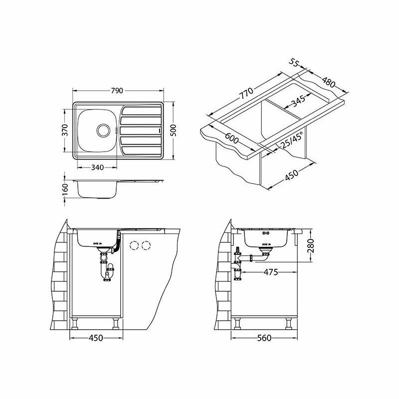 Кухонная мойка ALVEUS ZOOM 20 LEI-90 790X500 1X нерж.сталь (1098939)