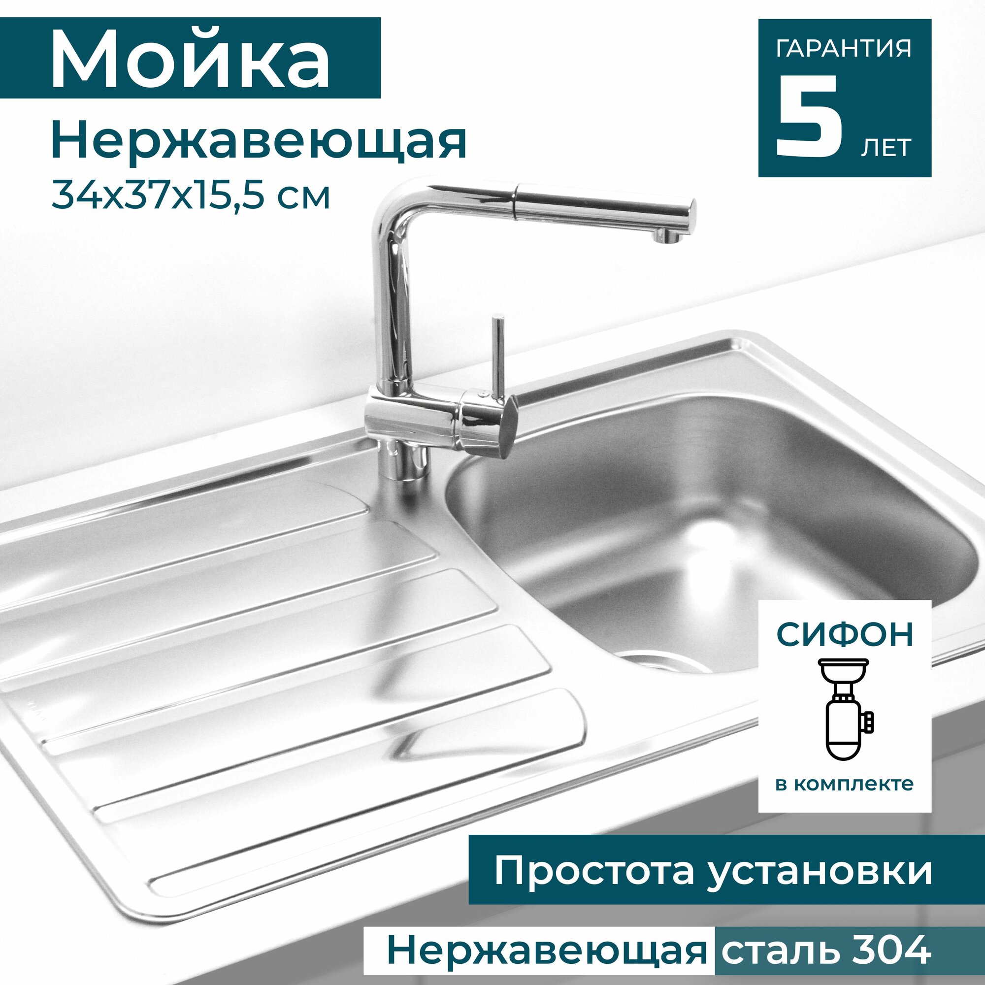 Мойка для кухни врезная из нержавеющей стали ALVEUS ZOOM 20 NAT-90 790X500 с сифоном