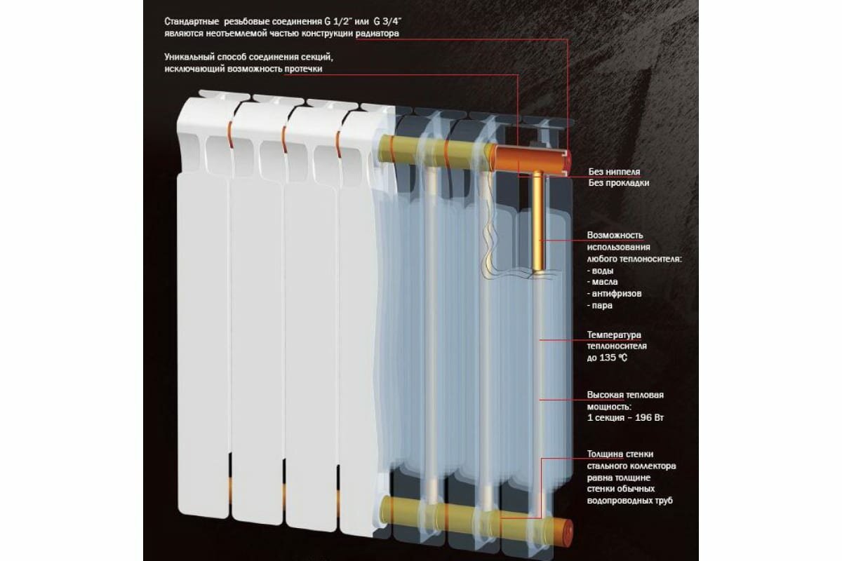 | Плюсы: | биметаллический, монолит, качество сборки, отечественный производитель |