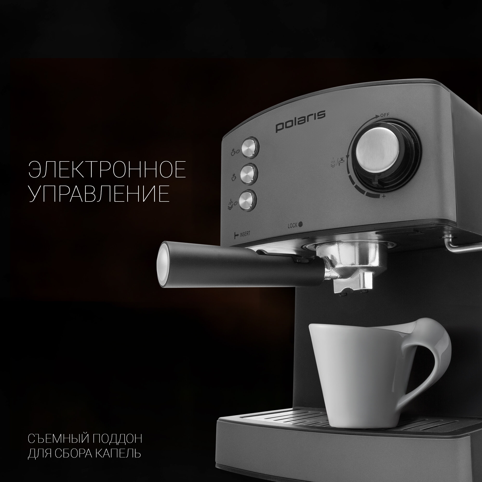 СохранитьКофеварка рожковая Polaris PCM 1527E Adore Crema с ручным капучинатором, серый интересное:
