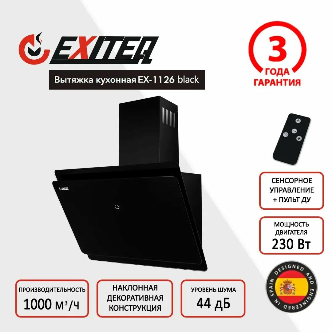 Вытяжка наклонная EXITEQ EX-1126 black, 1000 куб. м/час, ширина 59.5 см, черный, Китай