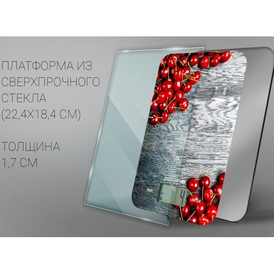 Весы кухонные электрон POLARIS PKS1046DG Cherry 10 кг, стекло
