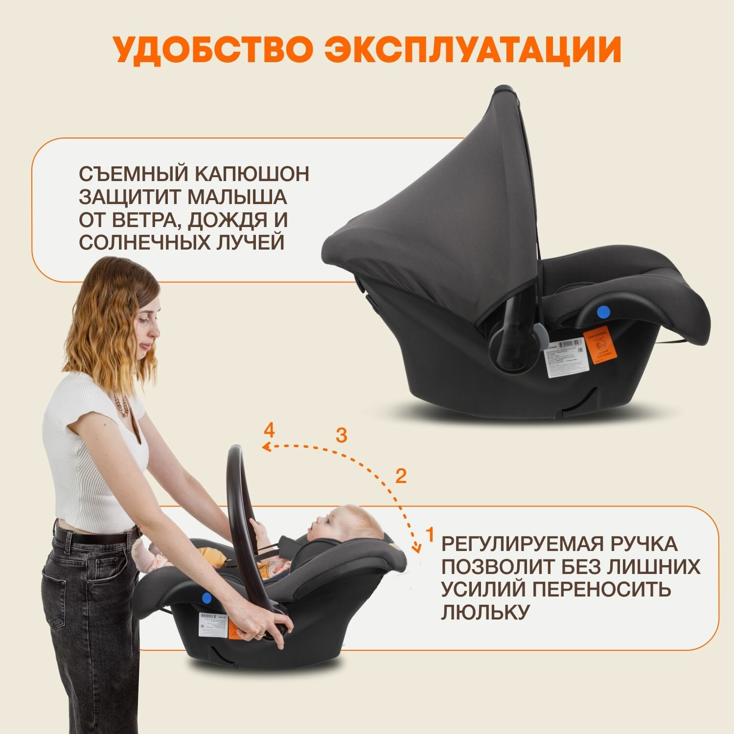 | Плюсы: | Отличная переноска! Очень мягкая и комфортная. Ремешки младенцу не мешают, у них очень мягкие накладки. Капюшон легко снимается и надевается. Ручка переноски удобная, не шатка, надежная. |