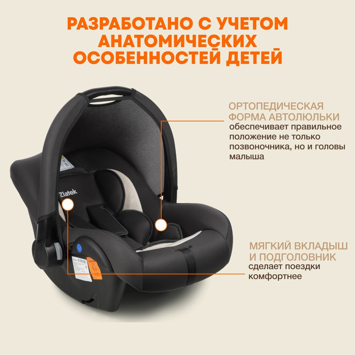 СохранитьАвтокресло детское, автолюлька для новорожденных Zlatek Colibri Люкс от 0 до 13 кг, жемчужная сталь интересное: