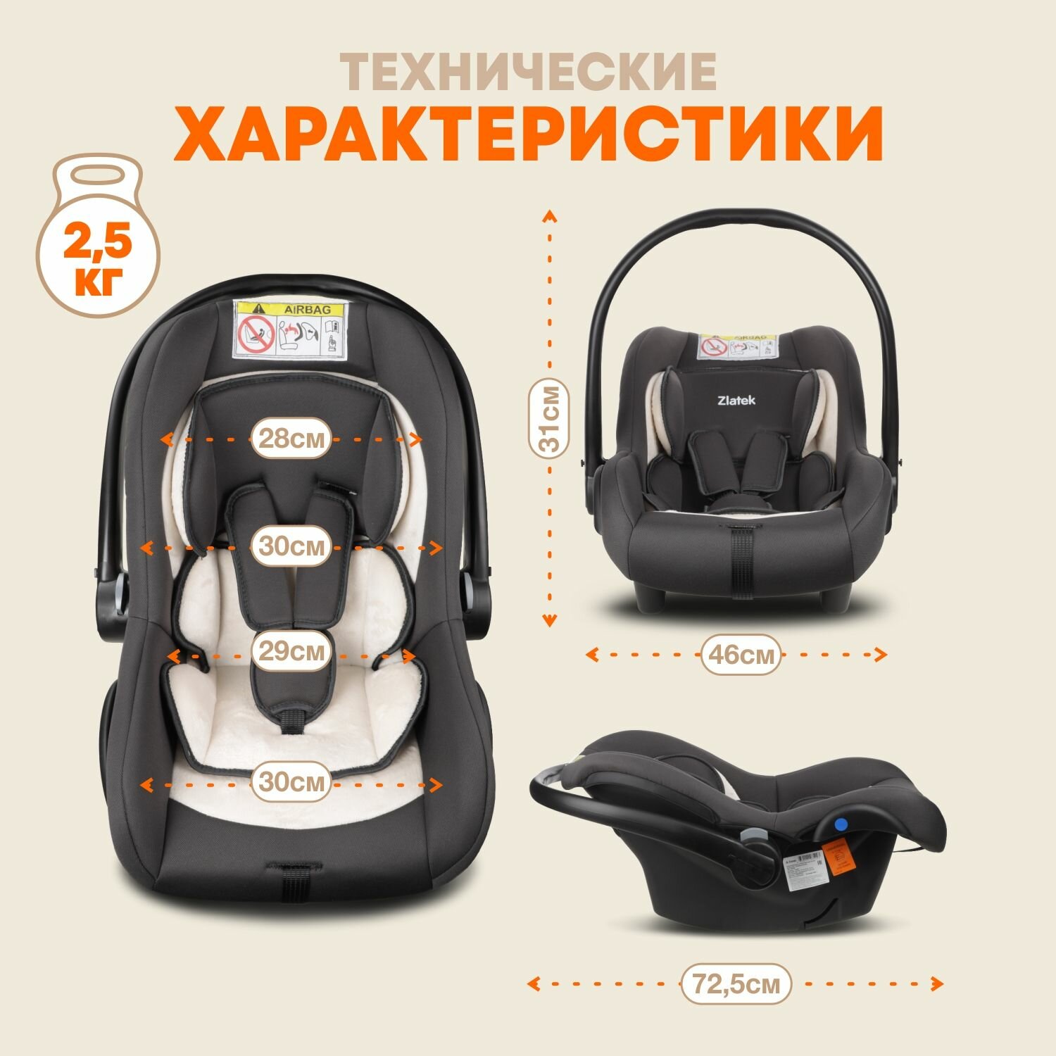 Автокресло Zlatek Colibri lux 0+ (0-13 кг) светло-коричневый