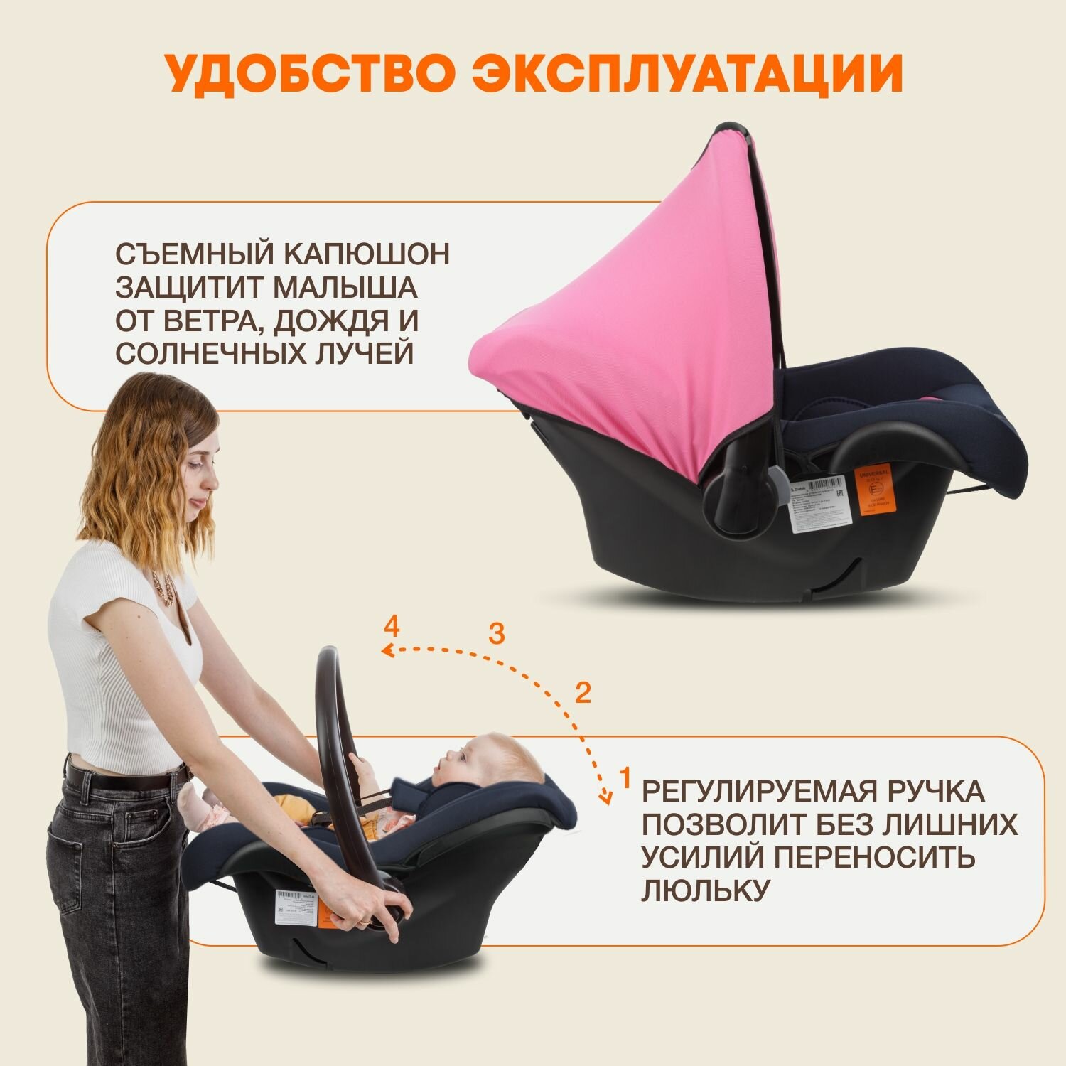 | Плюсы: | Отличная переноска! Очень мягкая и комфортная. Ремешки младенцу не мешают, у них очень мягкие накладки. Капюшон легко снимается и надевается. Ручка переноски удобная, не шатка, надежная. |